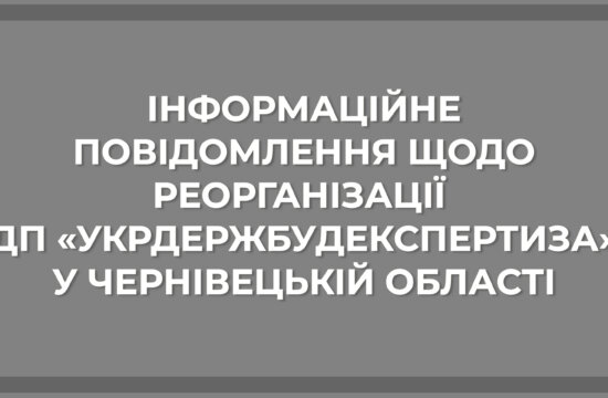 ІНФОРМАЦІЙНЕ ПОВІДОМЛЕННЯ ЩОДО РЕОРГАНІЗАЦІЇ ДП «УКРДЕРЖБУДЕКСПЕРТИЗА» У ЧЕРНІВЕЦЬКІЙ ОБЛАСТІ