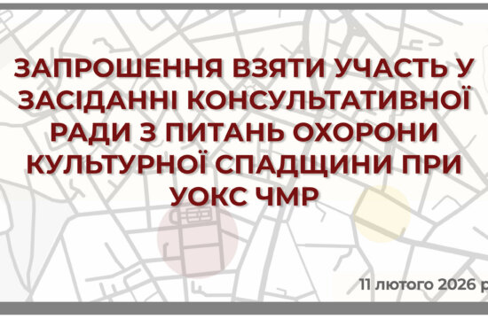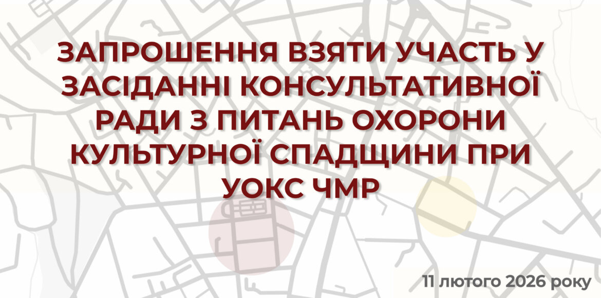 ЗАПРОШЕННЯ ВЗЯТИ УЧАСТЬ У ЗАСІДАННІ КОНСУЛЬТАТИВНОЇ РАДИ З ПИТАНЬ ОХОРОНИ КУЛЬТУРНОЇ СПАДЩИНИ ПРИ УОКС ЧМР