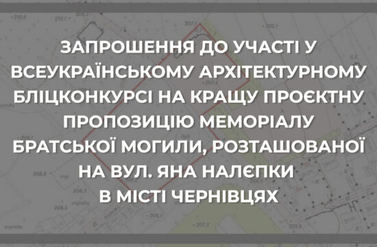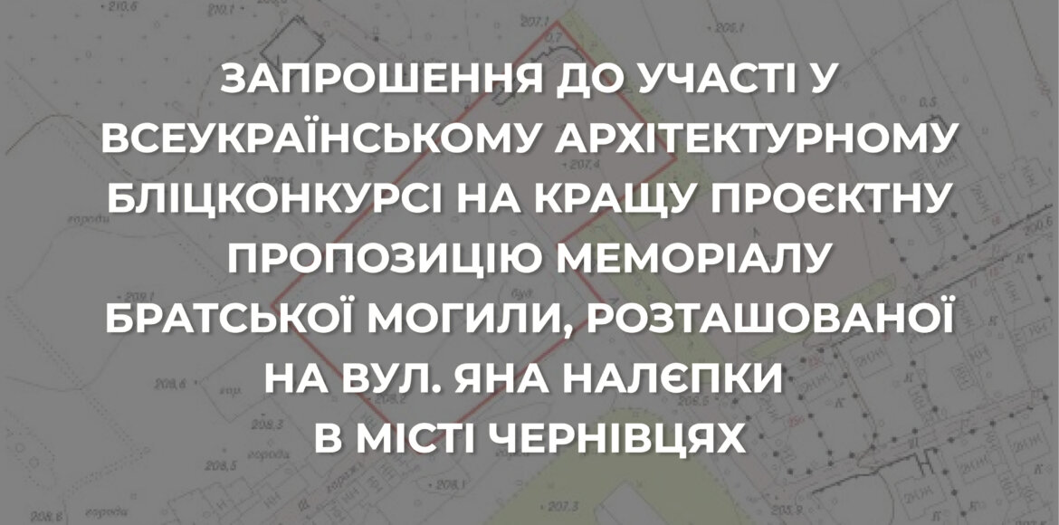 ОГОЛОШЕННЯ ПРО ПРОВЕДЕННЯ ВСЕУКРАЇНСЬКОГО АРХІТЕКТУРНОГО БЛІЦКОНКУРСУ НА КРАЩУ ПРОЄКТНУ ПРОПОЗИЦІЮ МЕМОРІАЛУ БРАТСЬКОЇ МОГИЛИ, РОЗТАШОВАНОЇ НА ВУЛ. ЯНА НАЛЄПКИ В МІСТІ ЧЕРНІВЦЯХ