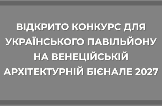 Відкрито конкурс на відбір проєкту для Українського павільйону на 20-й Міжнародній архітектурній виставці – La Biennale di Venezia 2027. Конкурс проводиться з метою забезпечення прозорого та конкурентного відбору концепції, яка представить українську архітектурну та міждисциплінарну думку на одній із найпрестижніших міжнародних платформ сучасної архітектури. До участі запрошуються архітектори, куратори, дослідники та міждисциплінарні команди, які працюють…