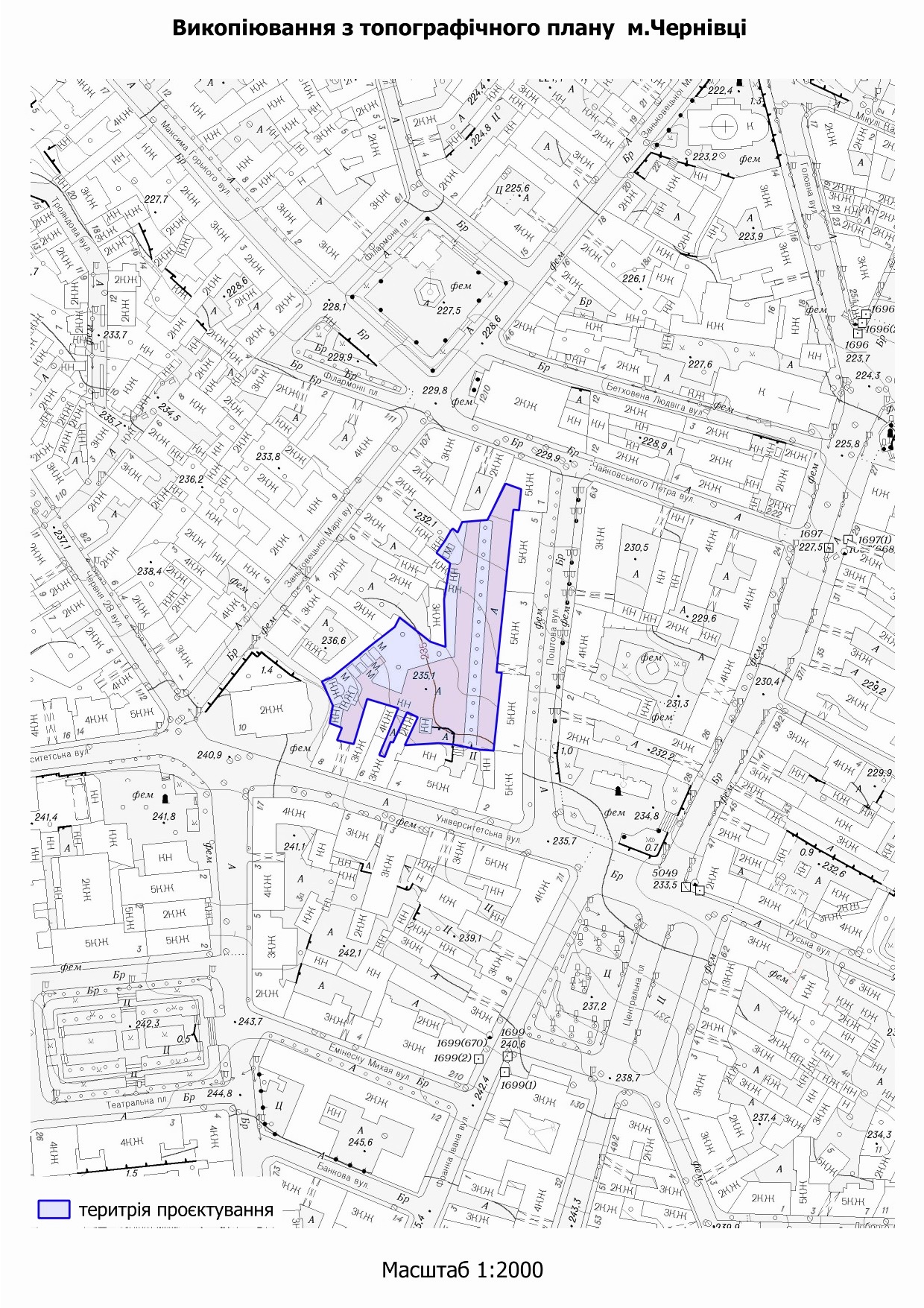 Тема конкурсу: розробка концепції благоустрою території, обмеженої житловою забудовою по вулицях Поштова, Університетська та Заньковецької, в місті Чернівцях.