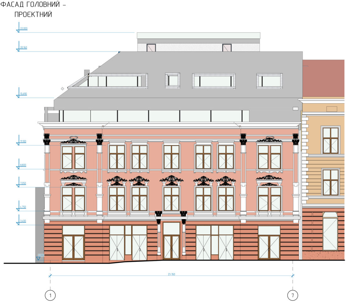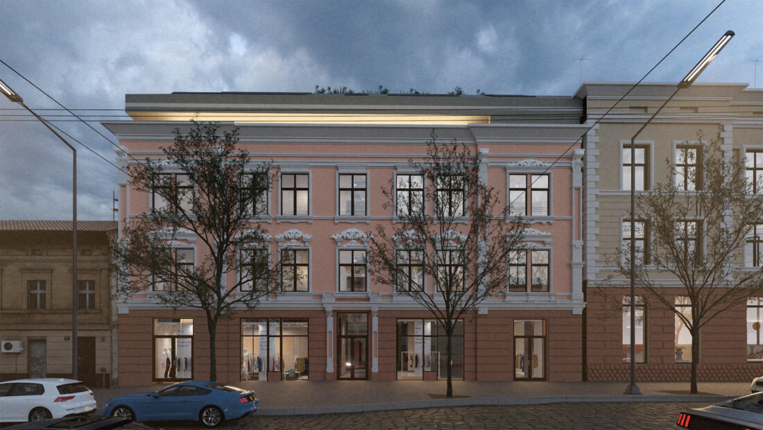 2.Реконструкція нежитлової будівлі під громадську будівлю з вбудованими приміщеннями побутового обслуговування населення, громадського харчування та торговими залами за адресою вул. Героїв Майдану, 4 в м. Чернівці.